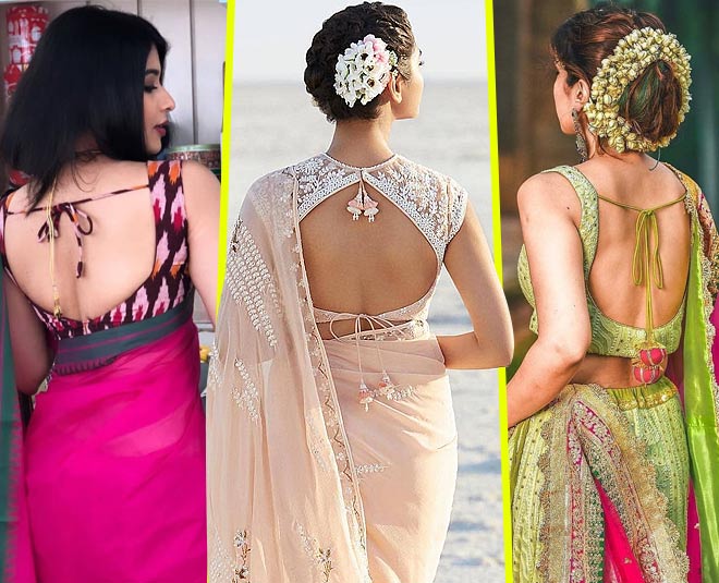 A Backless cholis has been flaunted by many artists. Summer is the time when you are elegant with your art. The backless blouse is perfect for a woman who is confident with her body. If you are brave then try bikini blouses. She immediately becomes a glamour girl. Do not create beads or Swarovski for further creation. Fashion becomes artificial. If the material of the blouse is simple, add accessories such as chunky accessories.