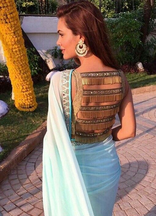 Want to look like a celebrity? This tassel and striped blouse design will surely catch your eyes because the design is fresh and unique. It is also one of the top favorites of celebrities. So this wedding season why not try it and rock the event?