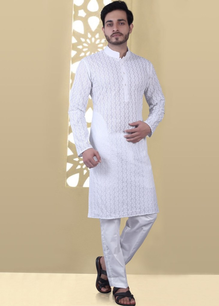 5. Plain White Chikankari Kurta Pyjama