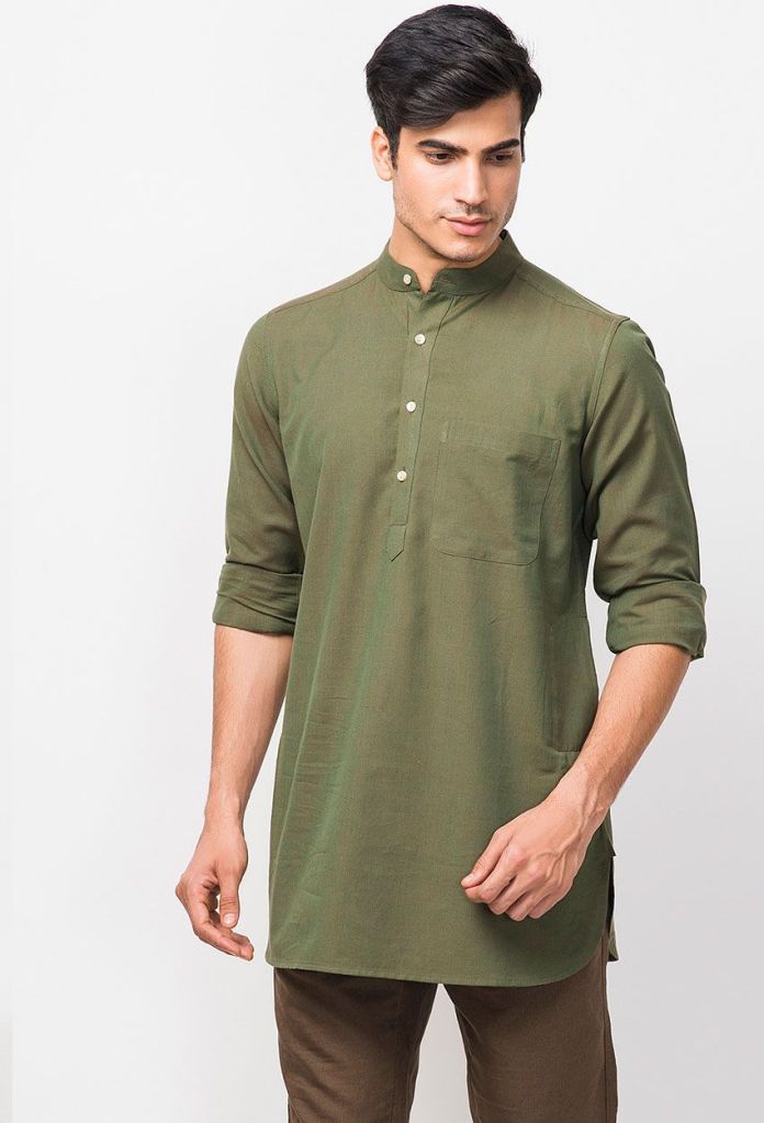 · Short Kurtas – Demand for Short Kurta is high in the market, as it perfectly suits the casual look when paired with jeans and shades. Today’s trendy form is mostly given a Pathani look with cuffed sleeves and collars. Any Solid color short kurta with denim can enhance the personality of the wearer.
