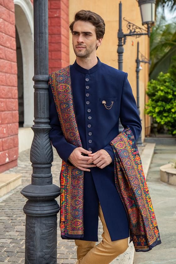 Sherwani attire is a long coat with an Achkan design. It is long, usually below the knee, and buttoned to the neck. It enhances the charm and grace of men, particularly larger ones. Men will spend a lot of money on a wedding sherwani suit. The traditional Sherwani for men is becoming increasingly popular. Mens kurta pajama, Sherwani, and churidar are fashionable in India and are sometimes paired with kurta sherwani and salwar.