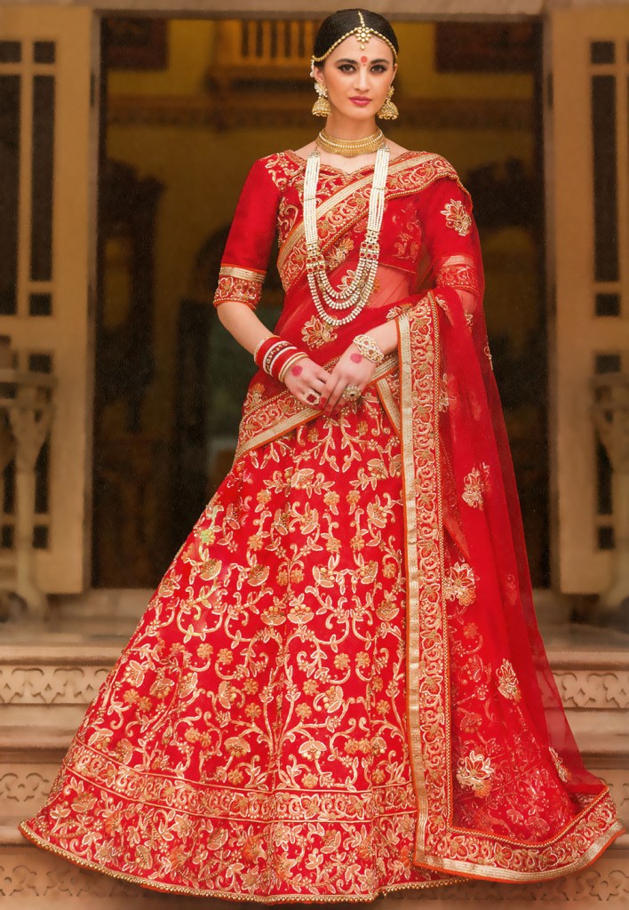 The most eye-catching lehenga sarees shine with amazing embroidery and embellishments. Skilled Indian artisans work meticulously to cover the fabrics in ornate accents. Just take a look at some superb examples: