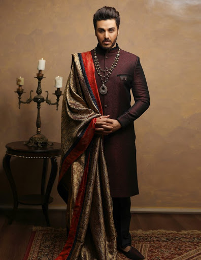Whether artistic motifs, patterns, materials, or embroideries, everything about this trendy sherwani is stunning. This modern design sherwani is beautiful and incorporates cultural and traditional elements. The most famous actors widely wear this stylish sherwani, and this sherwani sets the fashion parameters very high. Grooms who want their weddings to be modern and less conventional can try out this look; the most famous actors widely wear this stylish sherwani, and this sherwani sets the fashion parameters very high.