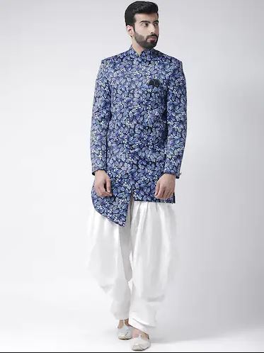 This sherwani is a cross between tradition and fashion. These Indo western sherwanis are fashionable. This outfit is suitable for grooms who enjoy the style and want to try something new and stylish. This outfit can be pretty dazzling because this sort of sherwani comes in various vivid colors and embellishments. There is no limit to how you can customize this look; you can change the sleeves, collars, and shapes of this dress to suit your preferences. Even the most minor elements, such as buttons and cufflinks, may make this suit look trendy.