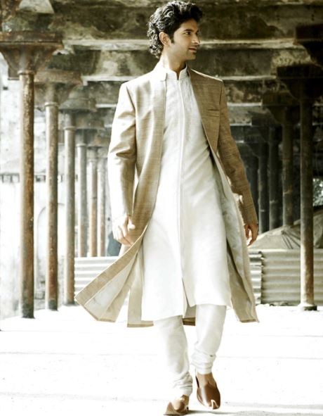Sherwanis were the European-styled court clothes for the royals and nobility of north India under the British rule of India. It was created when the British frock coat and the Indian achkan were combined. The design gradually gained acceptance in other sections of the country as an updated version of a traditional costume. Previously, the sherwani was worn over a kurta and paired with a dhoti, shalwar, pyjama, or churidar for the lower part of the body. In comparison to an achkan, which typically reached beyond the knees, the sherwani has become shorter in length. They are also composed of heavier materials than the kurta for men and feature an additional layer of lining as well as gorgeous embroidery on top.