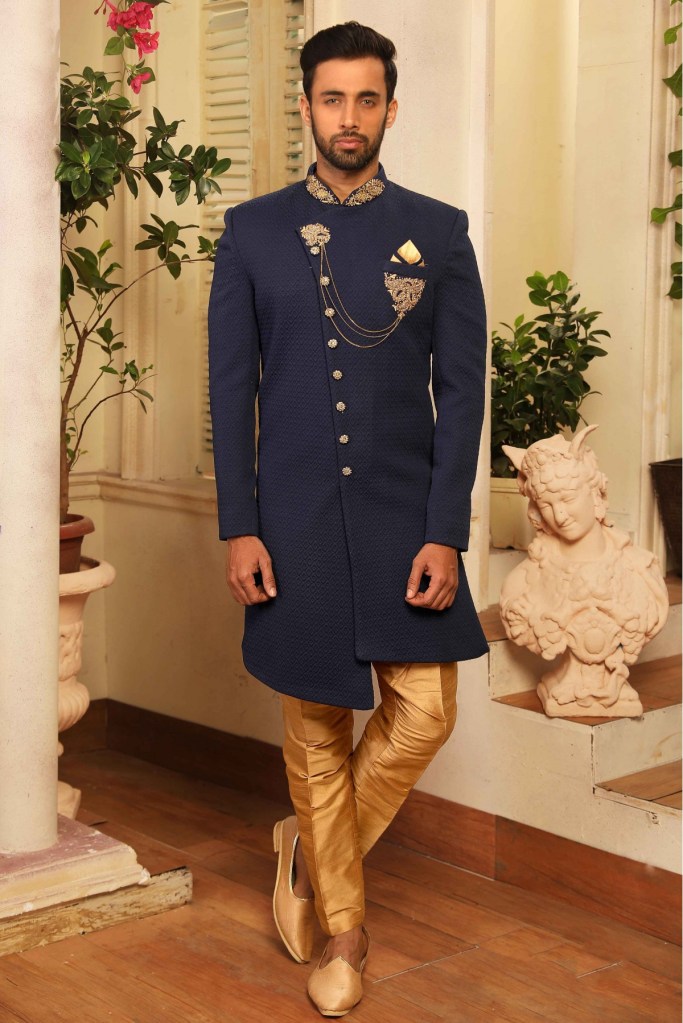 The days when the bride was the sole one who drew everyone’s attention are long gone. With their amazing appearances and attire, both the groom and the bride today capture the attention of the crowd. Grooms no longer wear the standard suits or tuxedos. The options for Indian grooms have grown. The challenge now for males is to find the perfect clothing. It used to be the only option, so he had to come up with ways to make it more stylish. Now, however, the options are limitless, and the groom choose his wedding attire based on his preferences and taste. The following are some of the many possibilities for men’s wedding attire that are presented and explained:-