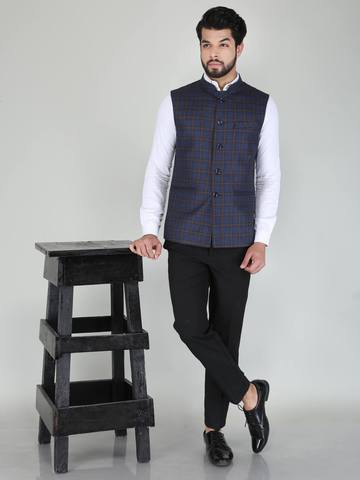 An Indo-Western Nehru jacket is a Nehru jacket that’s fused with western-style detailing like pockets or buttons. It’s usually made with a light fabric that’s a mix between a solid and a check pattern. The Indo-Western jacket is a casual, everyday jacket that can be dressed up or down depending on the rest of the outfit. It’s a great piece to have in your closet if you’re looking to add a bit of variety to your everyday outfits.