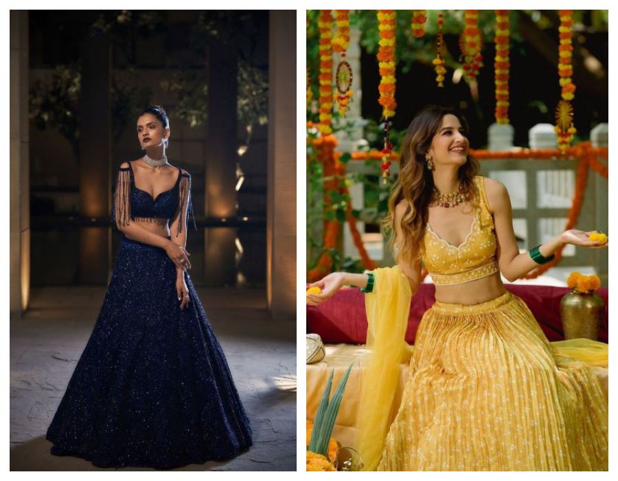 The wedding season is here, so it’s time to pick beautiful lehengas for all your ceremonies – from the wedding day to haldi, sangeet to mehendi to receptions, and more. As a bride, you’ll want different stylish lehengas that are comfy, grand, and royal. We’ve chosen lehengas to gracefully dress you for each special event.
