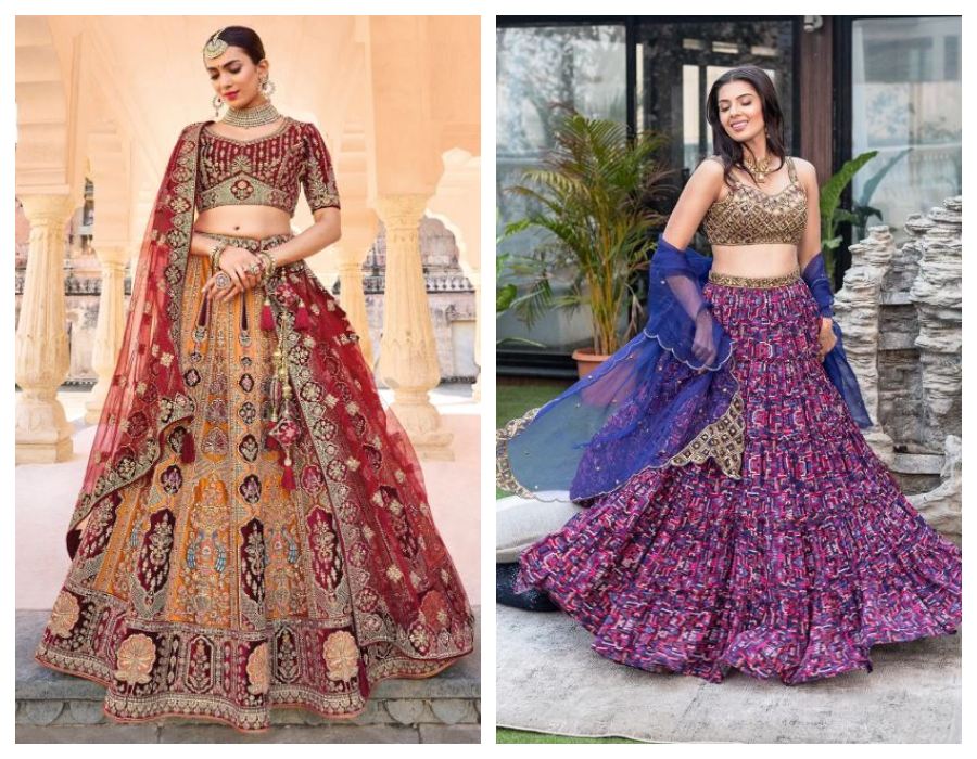 Whether paired with contrasting cholis or color-coordinated accessories, these printed lehengas let your inner diva shine bright!