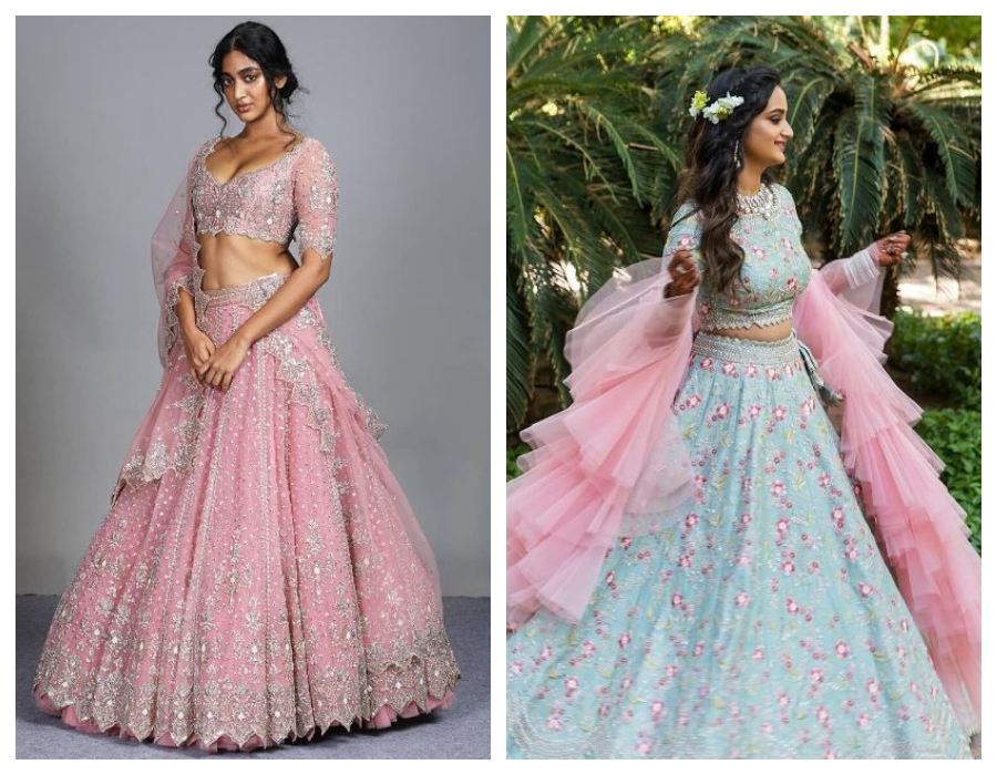 Detailed with floral motifs or geometric patterns, pastel lehengas spell fairy talesque elegance. A must-try for summer weddings!