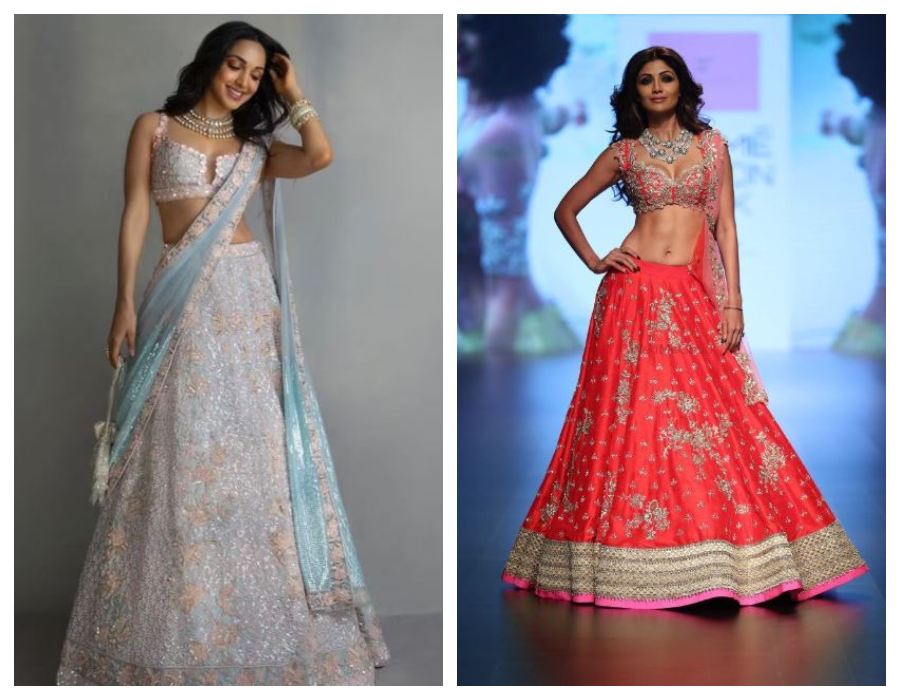 First, think about your body shape. Are you an apple or pear shape with a rounder silhouette? Go for a flared lehenga that flows out from the waist. Rectangular body? Look for designs that add curves. Hourglass figure? Lucky you – almost any style will be stunning. Inverted triangle shape? Ruffled or flared lehengas balance your proportions. Next, consider the colors. Look at your skin’s undertones as a guide. Warmer complexions glow in earthy hues like olive. Cooler tones shine in emeralds and deep blues. Some colors like teal, peach and cream white look beautiful on everyone.