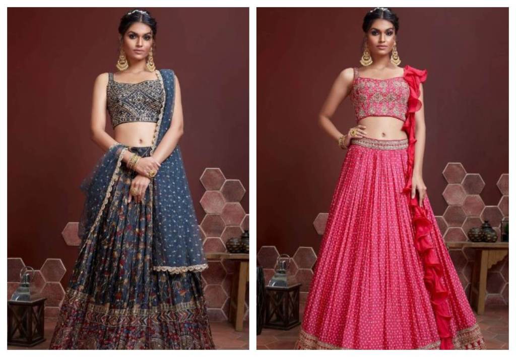 Contemporary party lehengas have stylish cuts and shapes. A-line lehengas have flared hems that swish as you move. Handkerchief hems with uneven cuts look boho chic. Long flowing maxi lehengas make a statement. Cropped lehengas ending above the ankles bare your heels and are great for mixing and matching. Opt for a well-fitting choli that complements your figure.