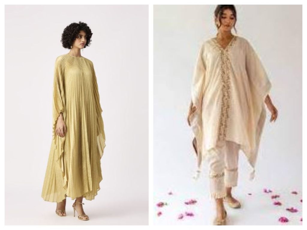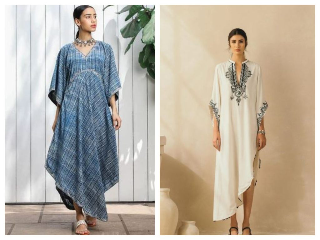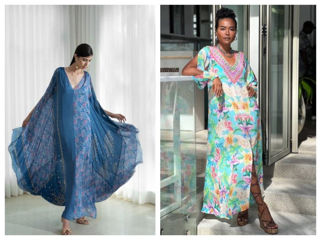 Kaftans featuring intricate embellishments are very on-trend right now. From beads, sequins and crystals to embroidery, lace and applique work – embellished accents elevate a kaftan to new heights of luxury. Placement of embellishments can create interest and accentuate different parts of the body. Focused embellishment on necklines, waistlines or hemlines are popular currently. Heavily embellished kaftan dresses make a glamorous style statement.