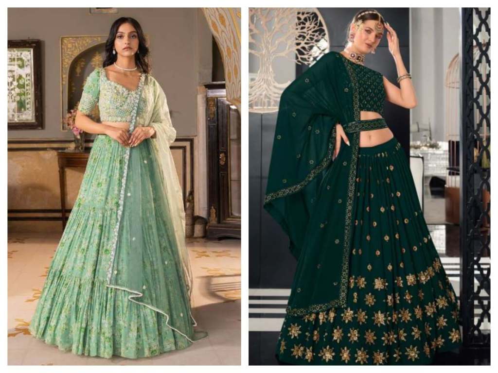 A vibrant parrot green or a leafy emerald can all work beautifully for bridesmaids’ lehengas. The key is picking a shade that complements the bridal outfit and suits the wedding theme. For a daytime or garden wedding, opt for lighter apple greens. Jewel-toned emerald green pops against darker decor and is perfect for evening receptions. If the bridal lehenga has green accents, match the color exactly or go a couple shades lighter or darker.