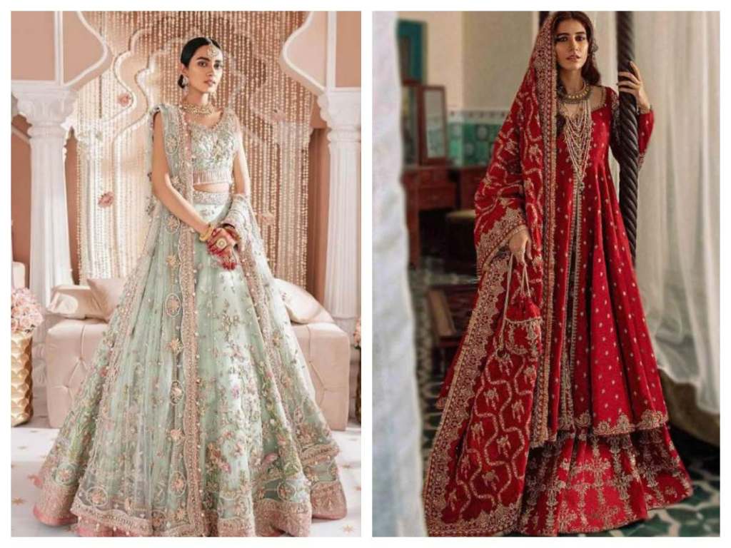 There are a few main types of lehenga designs popularly worn by Pakistani women: