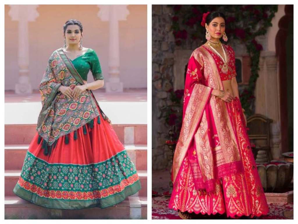Whether it is the traditional handloom banarasi or kanjivaram silks, patola, paithani, ikat, mashru, or tanchoi weaves – silk saris transformed into lehengas display some of the most complex, artistic weaving techniques and motifs. The richness of silk fabric makes it an appropriate canvas to intricate floral, paisley, peacock, geometric, temple or folk inspired woven designs. The density and sheen of silk lehenga cholis helps highlight the uniqueness of each weaving style.