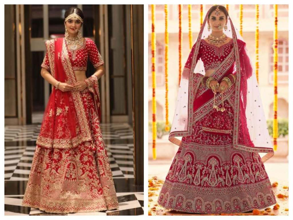 Take cues from B-town celebrities who sported gorgeous designer lehengas for their weddings. Deepika Padukone’s white and gold Sabyasachi lehenga, Anushka Sharma’s pale pink Sabyasachi number and Sonam Kapoor’s embroidered red Anamika Khanna lehenga are fine examples of the latest in bridal fashion.