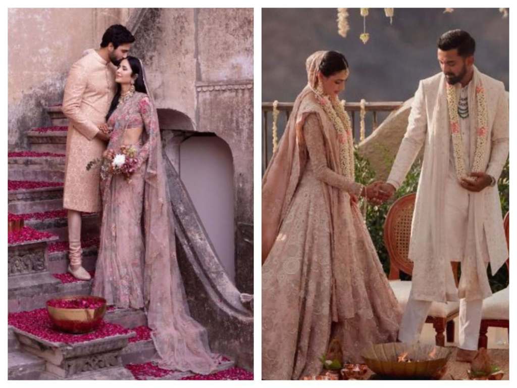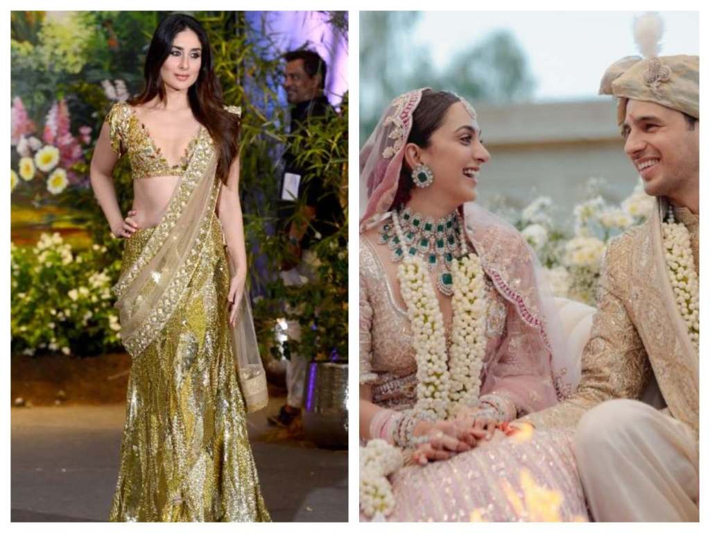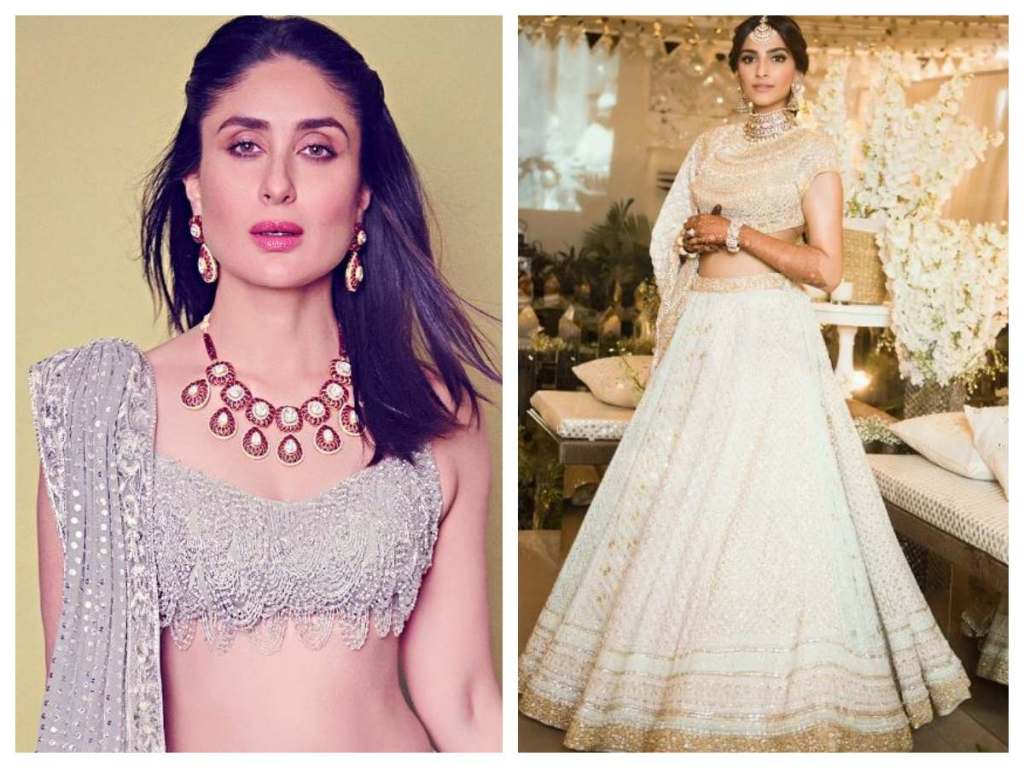 Prefer something more subtle yet equally gorgeous? Opt for intricately embroidered designer lehengas for the wedding functions. Kareena Kapoor Khan’s mint green and pink Good Earth lehenga set features delicate threadwork and bead embellishments. The pastel hues, organza fabric, and minimalistic patterns on the lehenga skirt spell understated elegance.