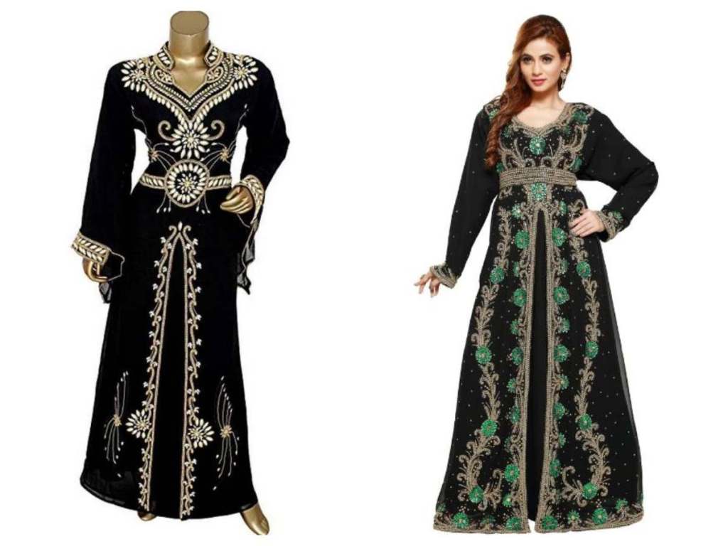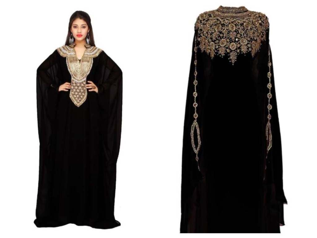 The black caftan dress are perfect for making a modest fashion statement when attending formal events. The full-length black kaftan dress looks more beautiful if paired with equally bold jewelry and heels. Whether made of silk, satin, or georgette, the ankle-length black caftan oozes sophistication.