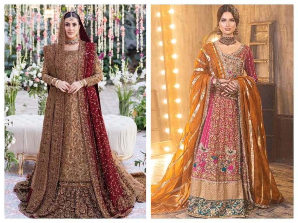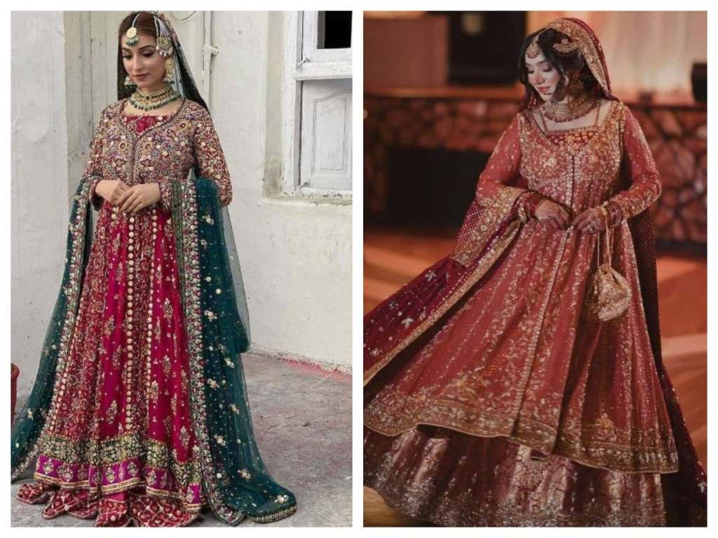 Pakistani lehengas come in different silhouettes that suit certain body types. The classic A-line lehenga with a flowing skirt flatters most body shapes. Tall, slim brides can opt for a mermaid cut lehenga. Plus-size brides look gorgeous in an Anarkali style lehenga. Make sure to choose necklines that complement your bust – deep V necklines for smaller busts and sweetheart necklines for larger busts.