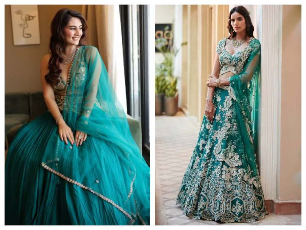 Blue lehengas come in a diverse range of fabrics, embroidery styles, silhouettes and hues. Navy blue, royal blue and powder blue are evergreen choices for the Indian bride and wedding guest alike. Emerald, turquoise and aqua blue lehengas also make a refreshing alternative to the usual red and maroon. Whether worn in silk, chiffon, georgette or velvet, blue lehengas effortlessly combine tradition with a modern twist.