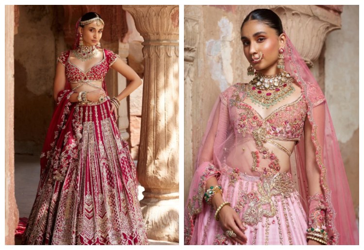 In India, when it comes to wedding functions, the designer bridal lehengas are one of the popular and loved bridal wear for the bride. Famous designers have mastered the art of making bridal lehengas in the best designs which will make the bride look fabulous. These lehengas for wedding are made from rich fabrics like silk, velvet, brocade, etc. Apart from using rich fabrics, these wedding lehengas comes with an intricate embroidery work, embellishments, zari work, sequins work, etc. that can take hours to make it. There are many color palette options for bridal lehenga like red, pink, maroon, peach, beige, etc. But designers are also experimenting with with colors like pastels, solid, etc.