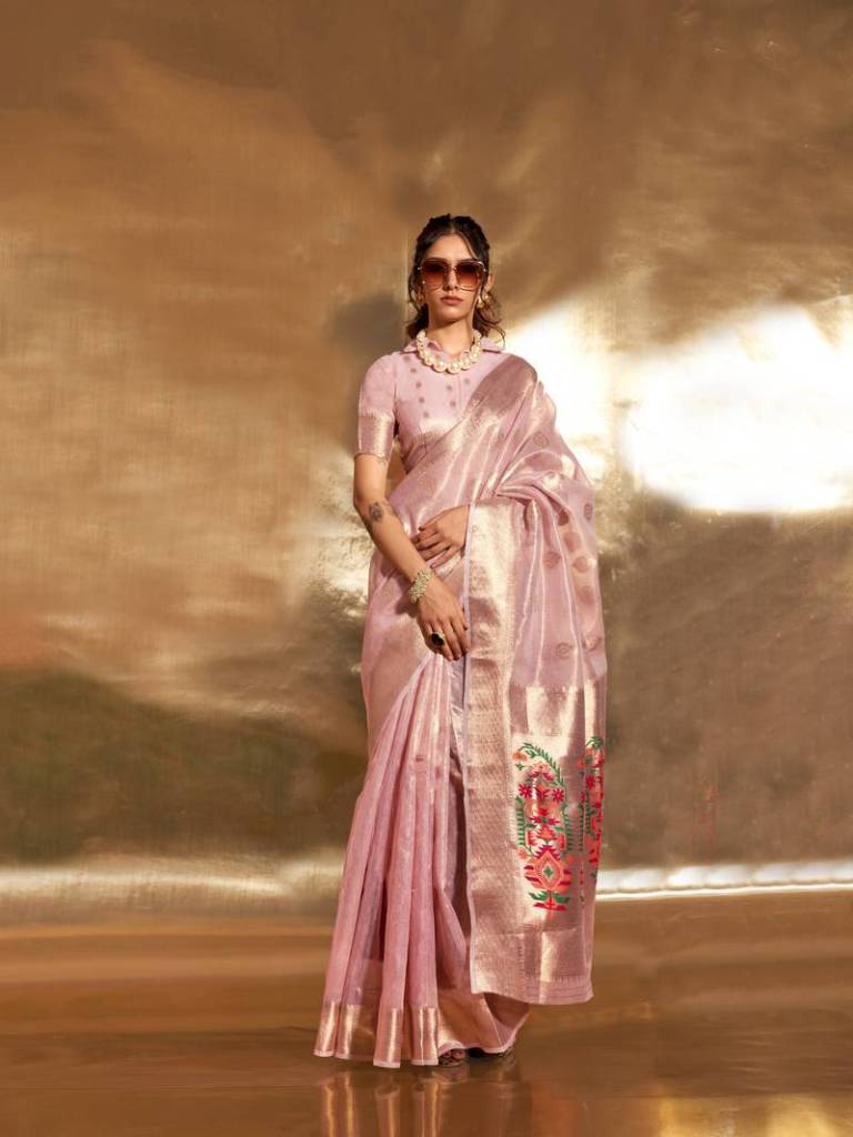 Just like a soft and lightweight tissue paper, this tissue Paithani saree comes with a breezy feel of subtlety but, of course, with a bit of shimmer. The glamor of this saree is achieved by interweaving zari with silk threads which apparently, makes this saree an A game for modern women who want to wear a saree but don’t want to feel the complexity of it.