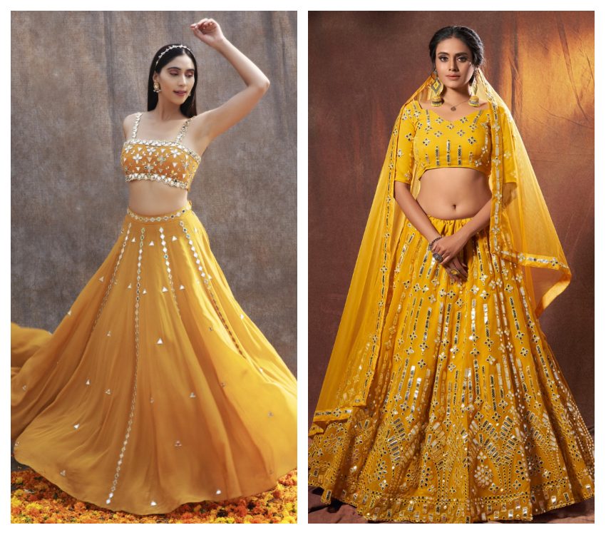 Yellow is a bright color which is perfect for festivals like Diwali, Navratri and Haldi ceremonies at weddings. A yellow color lehenga with mirror work or floral designs makes you look fresh and beautiful.