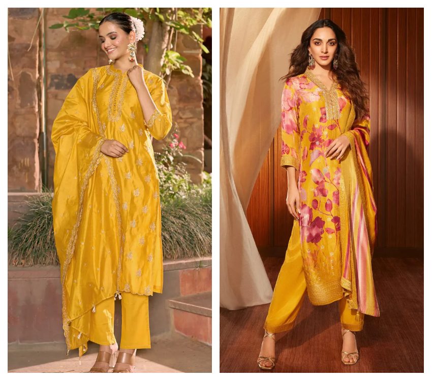 Attempt comparable long and straight suits and lehengas with medium flare as gheras add volume to the look. For sarees, pick gentler textures rather than firm ones for more slender appearance.