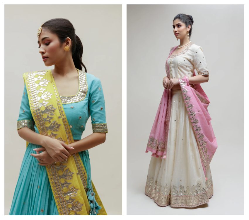 This material is exceptionally smooth and soft. Mulberry silk is also one of the most expensive fabrics. Choose colors like mint green, baby pink, mustard yellow and accessorize the lehengas for women with statement jewelry which either matches or contrasts the lehenga dress. Look and feel like a princess indeed.