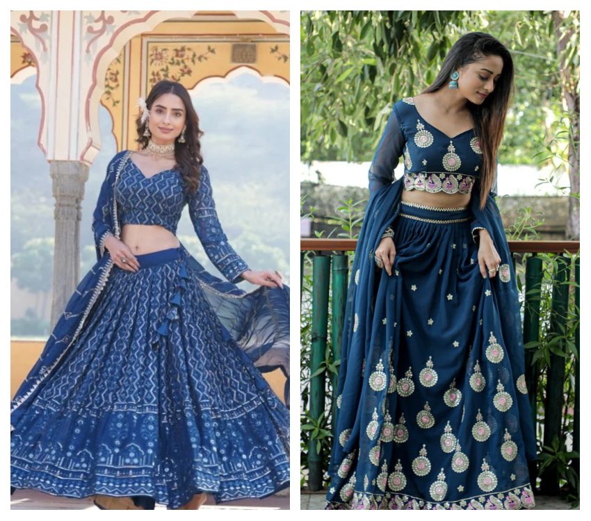 Steal the show with royal blue colored faux lehenga cholis which are talk of the town for quite some time now. Get all the eyes fix on you when you drape a beautiful piece of work crafted on these types of lehengas. Try to embed the same with colorful stones, sequin, cut dana and zari work. Try to team up these lehengas with cholis that have heavy works done on it and with dupattas of broader borders in contrast colors.