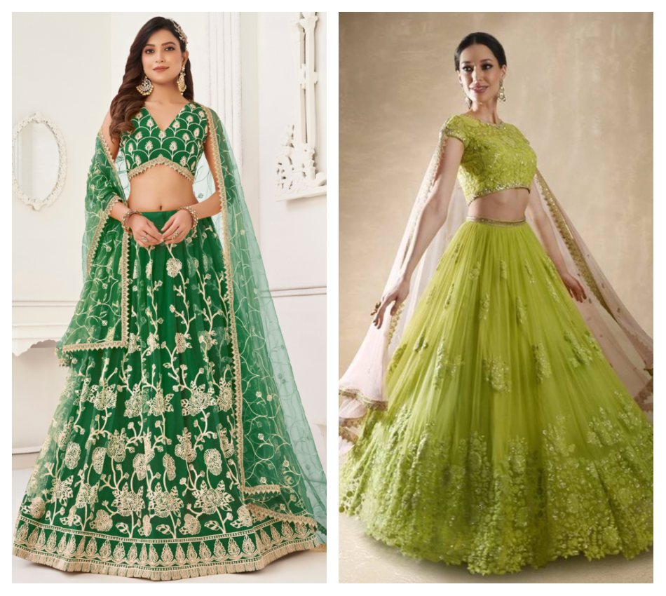 In the case of Olive or Moss Green Lehengas