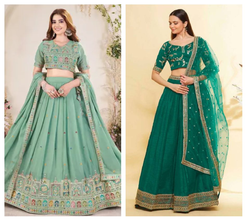 In case of Emerald Green Lehengas