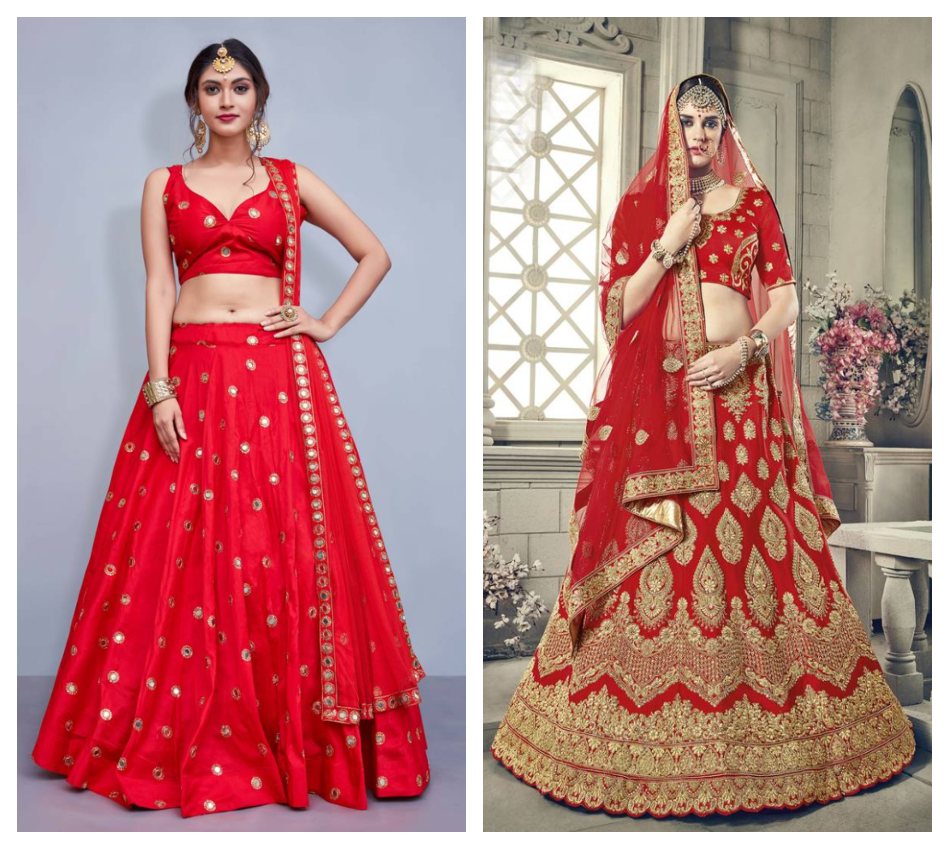 The lehengas in red color are deeply rooted into values and traditions. Red is commonly seen in bridal wear across states such as Punjab, Rajasthan, Gujarat and Uttar Pradesh, where brides are dressed in rich red garments. To several families, red is considered very sacred signifying marriage and the sacred radiance of the goddess Durga who is commonly depicted in red.