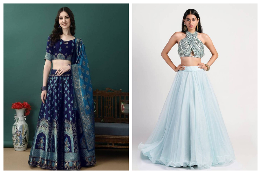 The shade of blue will matter just as much as the design when deciding on your blue lehenga.
