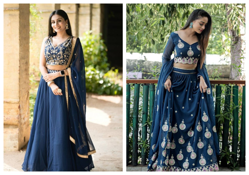 The trends of blue lehengas have jumped to a higher level with celebrity brides and designer collections, breaking blue out on the runways and into weddings. This year, the most sought after and featured designers are showing blue silk lehengas with different styles, mirror-work georgette sets, and sequined net lehengas, sparking and shining under the lights.