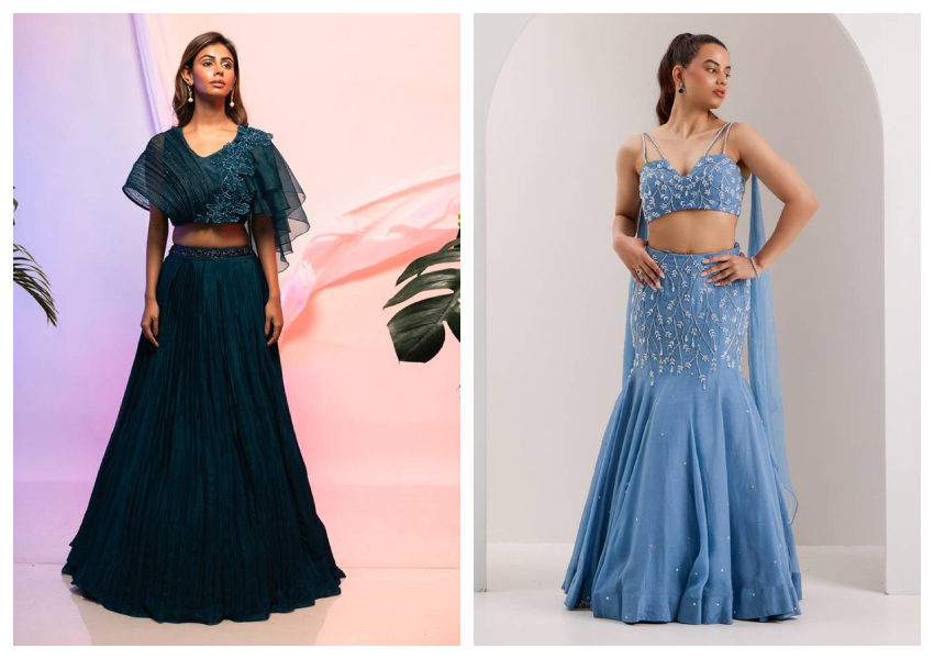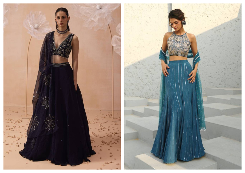 The blouse (or choli), along with the lehenga, is equally essential for building an overall cohesive, confident look. With a navy blue color lehenga, you have several blouse options: