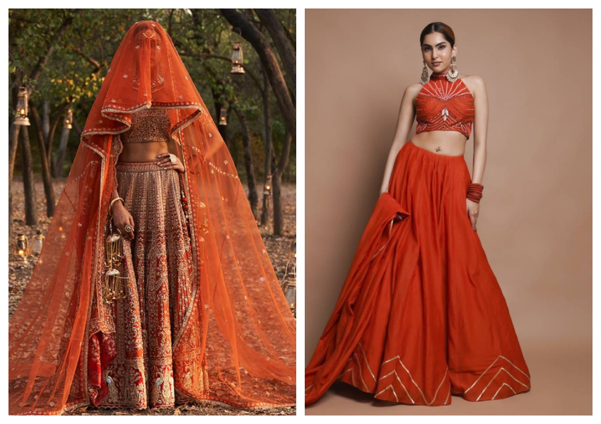 Among Indian fashion colors, orange is one of the most vibrant, dynamic, and culturally significant colors; yet when it comes to lehengas, it always seems to be an overlooked color when compared to the old-world colors of red, maroon, pink, or new-world pastel hues. Anyway, orange has all the attributes to be a clear favourite, being bold, bright and festive, while conversely, it is surprisingly versatile. Where the misunderstanding lies in the underrated feature of orange, is based solely on others said orange is too vibrant, and maybe hard to style. To clarify; an orange lehenga can bring to the forefront of our minds, whether in your uncle’s backyard or a five-star hotel, one of the latest, striking, and captivating outfits for any festive/wedding. Orange provides an exceptional balance between a traditional style while contains modern day glamour, orange deserves more time in the limelight!!