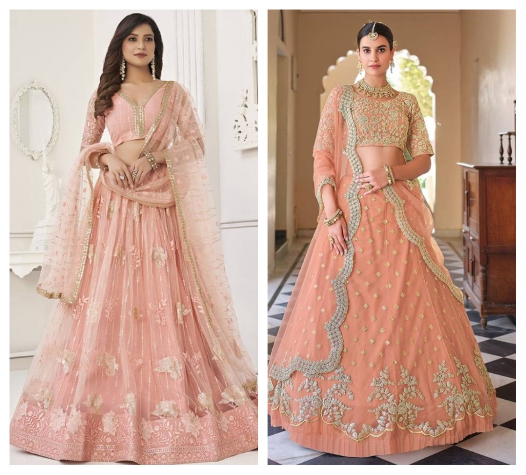 Minimalist fashion has become a driving force behind the rise of peach color lehengas amongst women in India; as an increasing number of women seek to dress with confidence and sophistication by wearing only what makes them feel comfortable without compromising style and quality of craftsmanship, clean lines, thoughtfulness in detailing, lightweight garments that make them feel good while looking good. The neutral nature of peach lehenga cholis provides the perfect foundation for this type of fashion. Instead of being heavy, layered, and heavily embellished with “over the top” designs, the focus shifts to the quality of the garment through craftsmanship, subtle textures, and high-quality materials to elevate their overall elegance.
