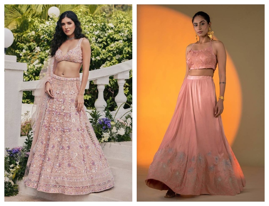 Excellent designers have helped push the peach lehenga to a trendy level. Peach has been seen at couture shows and bridal collections in different forms by top designers, using exquisitely crafted details such as florals, tonal embroidery, sequins, and textured fabrics. Because of how peach enhances the fine-detailing of an outfit, this has allowed the artistry of each individual outfit to also be highlighted. There is now a full range of options for peach lehenga sets in the wedding fashion world, from minimalistic styles to heavily embellished couture designs.