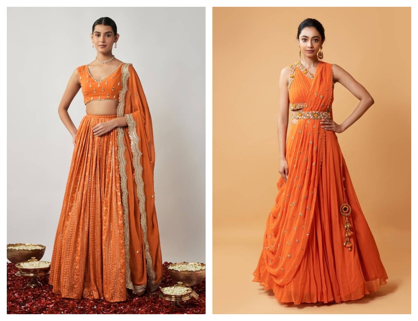 An Orange Lehenga Set Has Many Different Shades to Choose From