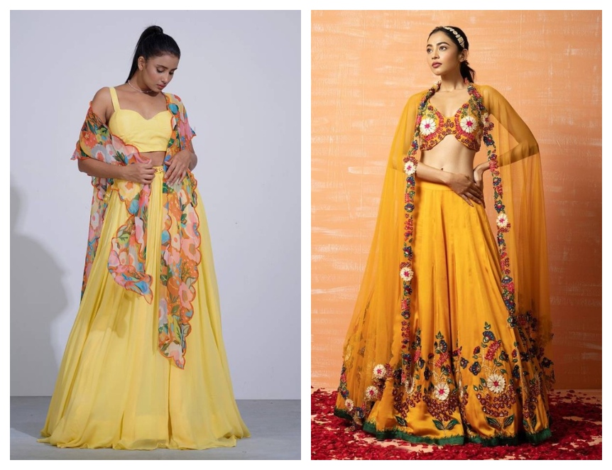 Dupattas made of lightweight net or organza with embroidered borders can provide elegance, however, do not add weight, and will complement yellow lehengas with a floral printed dupatta during summer celebrations.