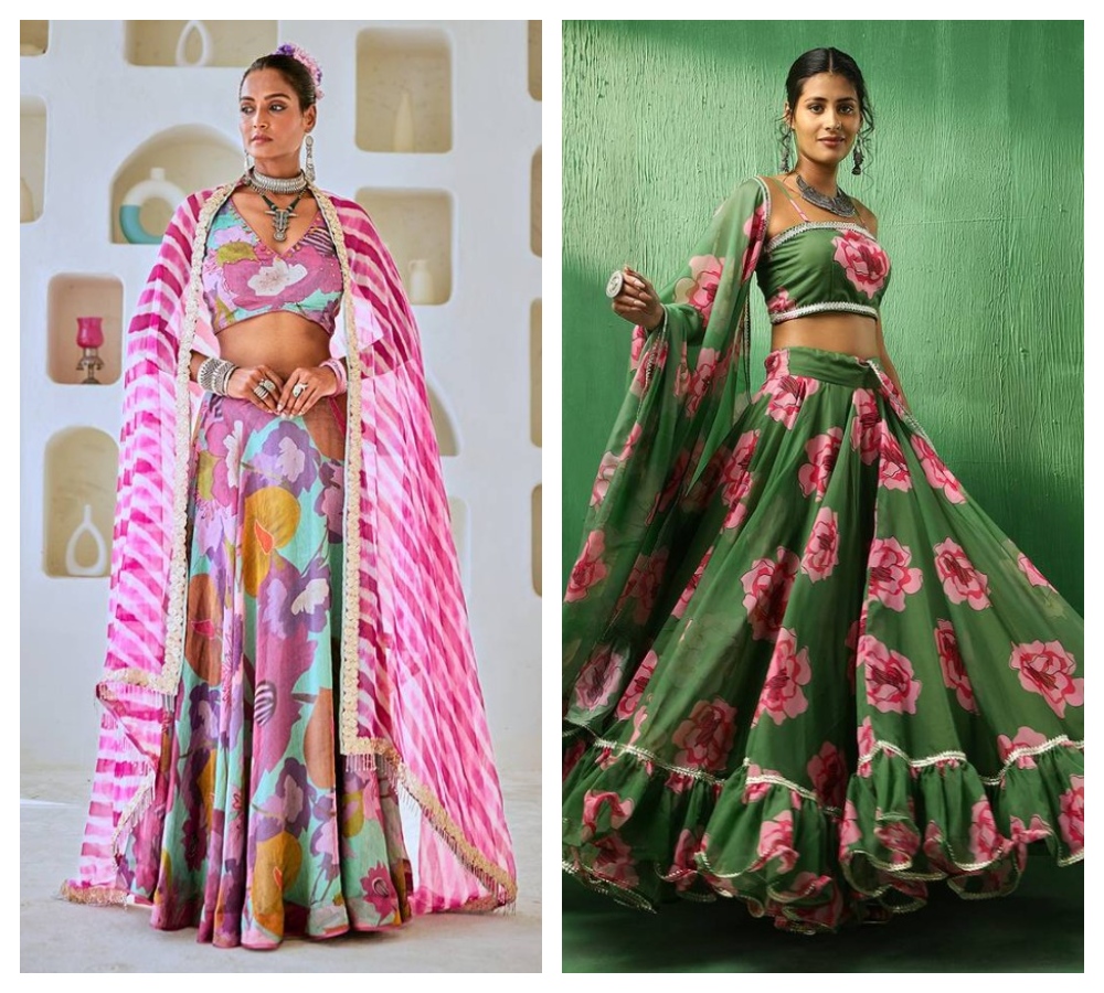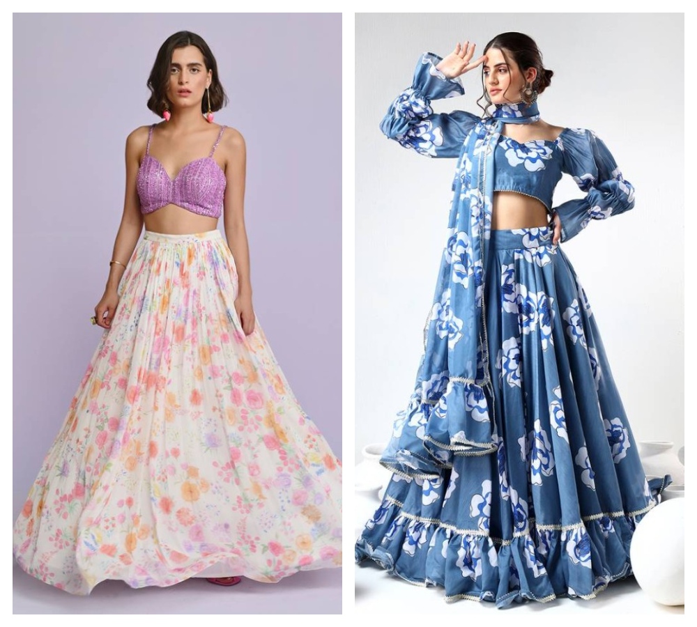 When attending outdoor events, such as festivals or fairs, comfort can be very important if they last for hours. Many floral lehengas are created from lightweight materials like chiffon, georgette, organza, and net. These types of fabrics provide air flow so that there is easier movement and more comfort for the person wearing the floral lehenga when it is hot outside. The use of lighter embellishments or prints means that floral lehengas are generally easier to wear than traditional heavily embroidered lehengas – thereby providing a good balance of style and comfort making them appropriate for the daytime ceremony and outdoor celebrations.